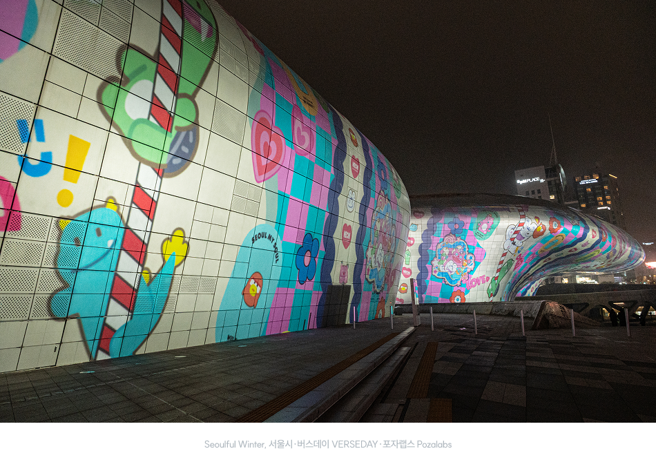 서울시가 미디어아트 레이블 버스데이 VERSEDAY, AI 작곡 크리에이터 기업 포자랩스 Pozalabs와 협업 제작한 작품으로, 서울을 상징하는 캐릭터 해치와 소울프렌즈가 등장해 겨울밤의 DDP를 빛으로 물들인다. 15년만에 새롭게 단장한 해치의 실루엣이 또렷이 드러나며 서울이라는 도시를 시민들을 따뜻하게 품는 보금자리이자 희망의 터전으로 묘사한다. 이에 백호, 현무, 주작, 청룡을 모티브로 탄생한 소울프렌즈 캐릭터가 더해지며 전통적 상징과 현대적 연출이 결합된 패턴 아트로 펼쳐진다.