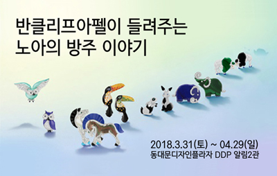 반클리프 아펠이 들려주는 노아의 방주 이야기(L’Arche de Noé racontée par Van Cleef & Arpels)로 이름 붙여진 이번 특별전은 성서 속에 등장하는 전설적인 스토리인 ‘노아의 방주’에서 영감을 얻은 반클리프 아펠의 동명의 하이 주얼리 컬렉션을 현대 공연예술계의 거장으로 통하는 미국의 극장예술가이자 시각예술가인 로버트 윌슨(Robert Wilson)과의 협업을 통해 특별한 테마가 있는 공간에서 소개하고자 마련되었습니다. 전설적인 '노아의 방주(Noah's Ark)'이야기에서 영감을 받은 본 컬렉션은 말썽꾸러기 원숭이, 우아한 백조, 역동적으로 달리는 말 그리고 비상할 준비가 된 이국적인 새를 묘사한 주얼리를 통해 동물의 왕국에 찬사를 표합니다.